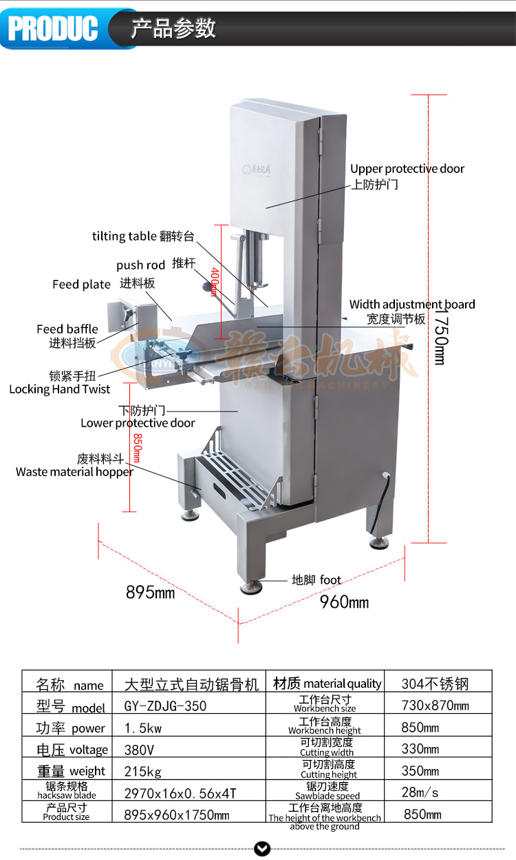 肉制品前處理->骨類加工設(shè)備->大型立式自動鋸骨機(jī) | |||||||