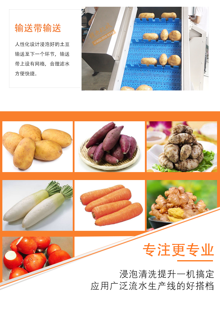 適用于根莖類(lèi)蔬菜清洗,比如土豆,紅薯,蘿卜,生姜等的清洗