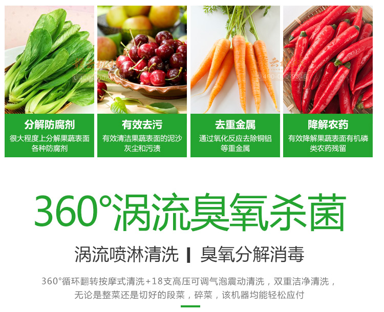 也是用于對(duì)蔬菜的清洗工作,可以對(duì)完整的或者切割過(guò)的菜進(jìn)行旋渦臭氧雙重清洗,達(dá)到快速清洗的效果。