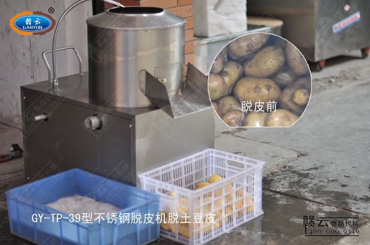 客戶體驗至上,效果滿意為旨,來自贛州本地客戶試機體驗39型不銹鋼脫皮機去除土豆皮?蛻糇詭炼乖嚈C體驗。