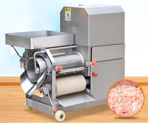 贛云牌魚(yú)肉采肉機(jī)通過(guò)裝有采肉桶和壓榨肉用的橡膠帶,利用滾動(dòng)的采肉桶和傳動(dòng)的橡膠帶的相互壓榨運(yùn)動(dòng)將魚(yú)擠入采肉桶內(nèi),而把魚(yú)皮、魚(yú)骨留在采肉桶外,由刮刀把它送出機(jī)外。