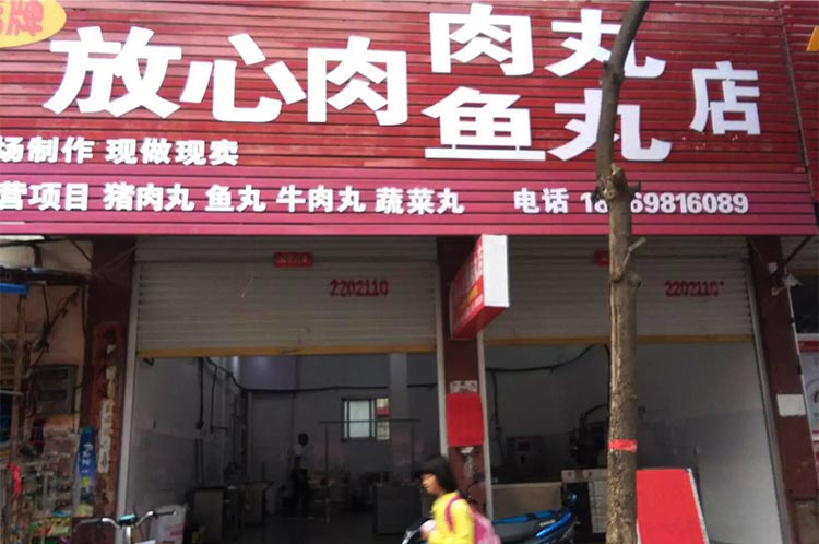 河南省信陽市羅山縣放心肉肉丸魚丸店,主營豬肉丸、魚丸、牛肉丸機蔬菜丸,秉承現(xiàn)場加工現(xiàn)做現(xiàn)賣,2016年10月2日達成設備采購,贛云全程策劃布局,工藝師上門傳授,并于2016年10月18日成功開張大吉。