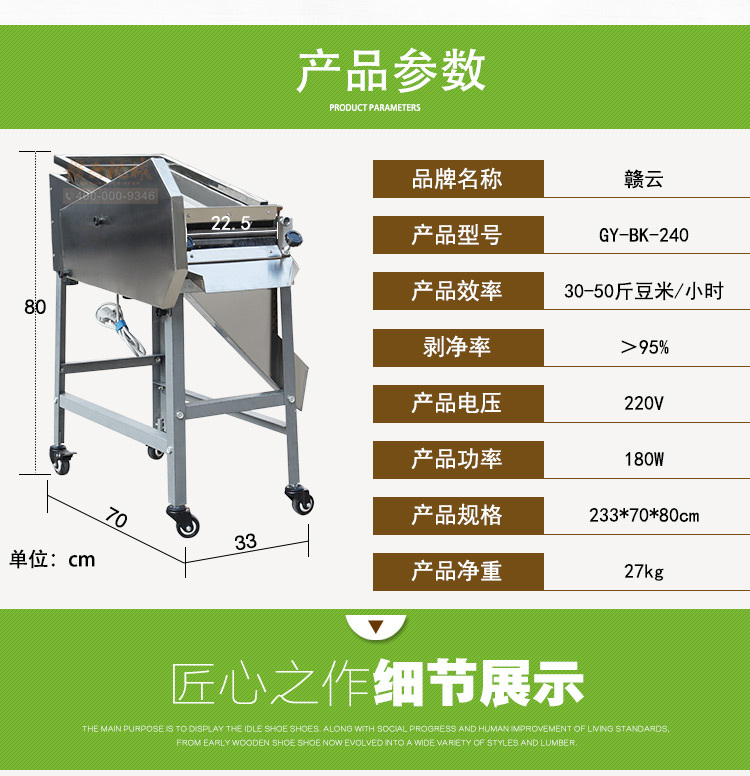 240自動剝豆機(jī),電耗0.15度/小時(shí)。機(jī)器剝毛豆速度快,衛(wèi)生、效益好。