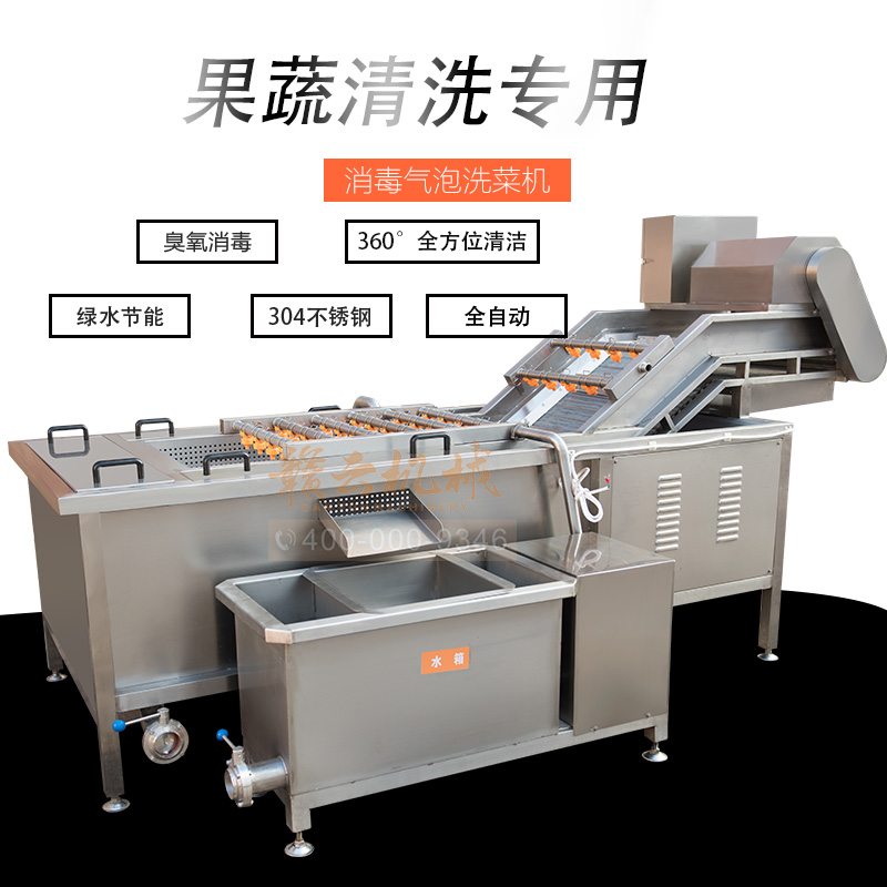 2、蔬菜清洗機自帶水循環(huán)系統(tǒng),清洗槽和低貯水箱中的水在高貯的水箱中過濾 后,再由離心泵加壓被送回水槽。耗水量較低,節(jié)水節(jié)能。所有附屬在清洗機上的裝置及構(gòu)件都可簡便安裝、拆卸和清洗。通過二至三臺的連接,可使清洗、去 異物、殺菌、冷卻等工藝連續(xù)進行。