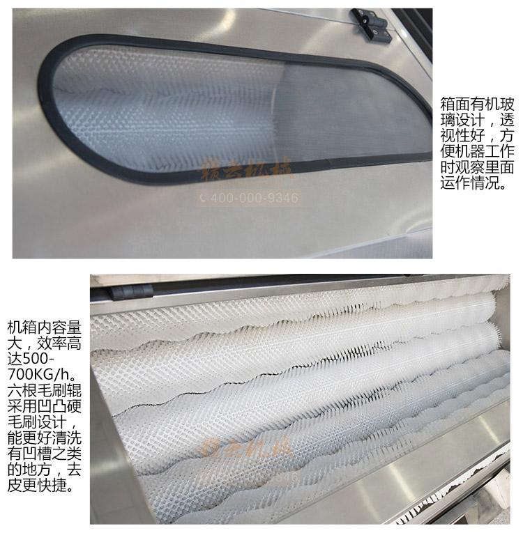 本設(shè)備主要采用304#不銹鋼制作(電機減速機、電器元件、軸承、毛輥刷等特殊部件除外),符合食品加工衛(wèi)生要求,,整機操作簡便、便于操作,具有工作平穩(wěn)可靠、噪音低、工作效率高等特點。