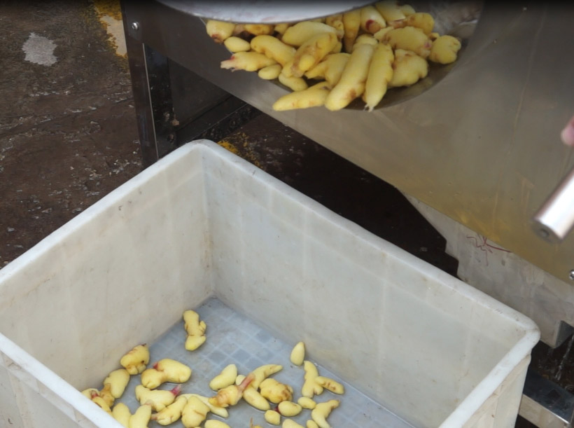 隨著生意的日漸擴(kuò)大,有作坊不再滿足于雇傭工人進(jìn)行腌姜制作,他們通過引進(jìn)毛輥清洗機(jī)