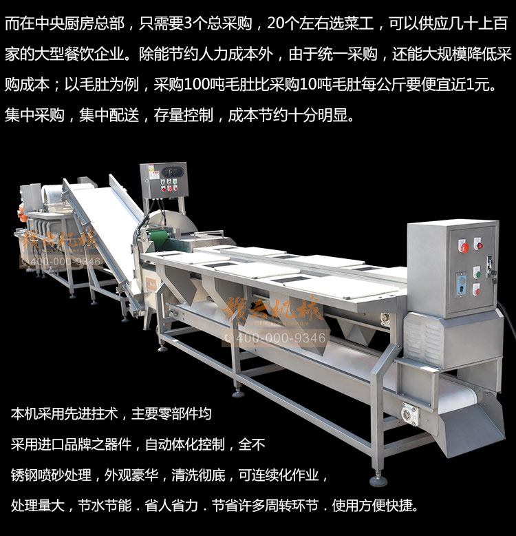 本套設(shè)備可用于中央廚房多元化分選、切割、清洗、過(guò)濾之用,主要適用于葉菜類凈菜加工切配,也適用于球根類蔬菜如白蘿卜、胡蘿卜等切片清洗,本套設(shè)備配有臭氧發(fā)生器,可用于清楚農(nóng)藥殘留,清洗模式采用渦流沖壓式漩渦清洗,并帶有三層過(guò)濾裝置,渦流水槽內(nèi)頂層排渣處理裝置,高頻振動(dòng)篩雙層過(guò)濾。價(jià)格說(shuō)明:配一臺(tái)提升機(jī)119980元/套,配兩臺(tái)提升機(jī)129860元/套。定制設(shè)備價(jià)格請(qǐng)與客服聯(lián)系