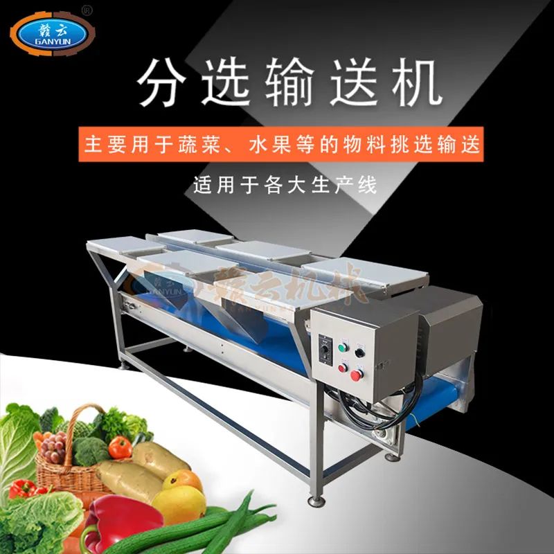 贛云牌FX-08型雙層挑選機(jī),也叫分選機(jī),模擬手工前期挑選工序設(shè)計(jì)二次,操作臺(tái)有上下分選輸送帶,上輸送帶將物料輸出至切菜機(jī)內(nèi)進(jìn)行切割工序,下輸送帶將廢料輸送至另一端收集出來。亦可根據(jù)客戶需求定制多層分選,定制加長(zhǎng)加寬,以符合中央廚房加工需求之用。